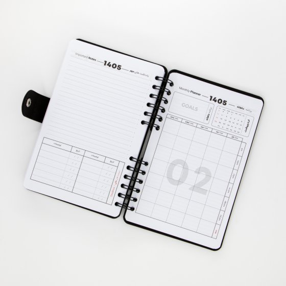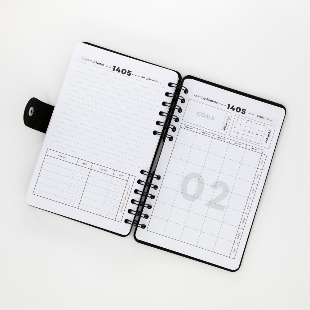 دارای پلنر و یادداشت ماهانه ابتدای هر ماه و جداول توسعه فردی و شغلی